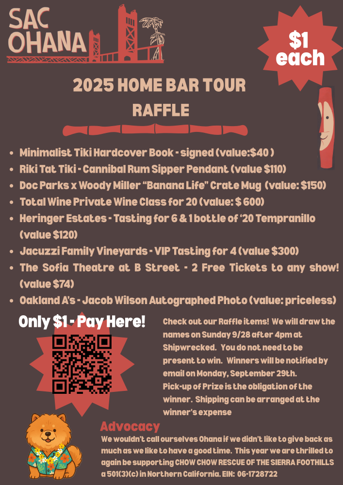 Taking place in September of 2025. The Sac Ohana Home bar tour is a culmination of events, screenings, marketplace, and a ticketed home bar tour. Get info about the tour, the bartender battle at The Jungle Bird or pre-order glassware at the links below.